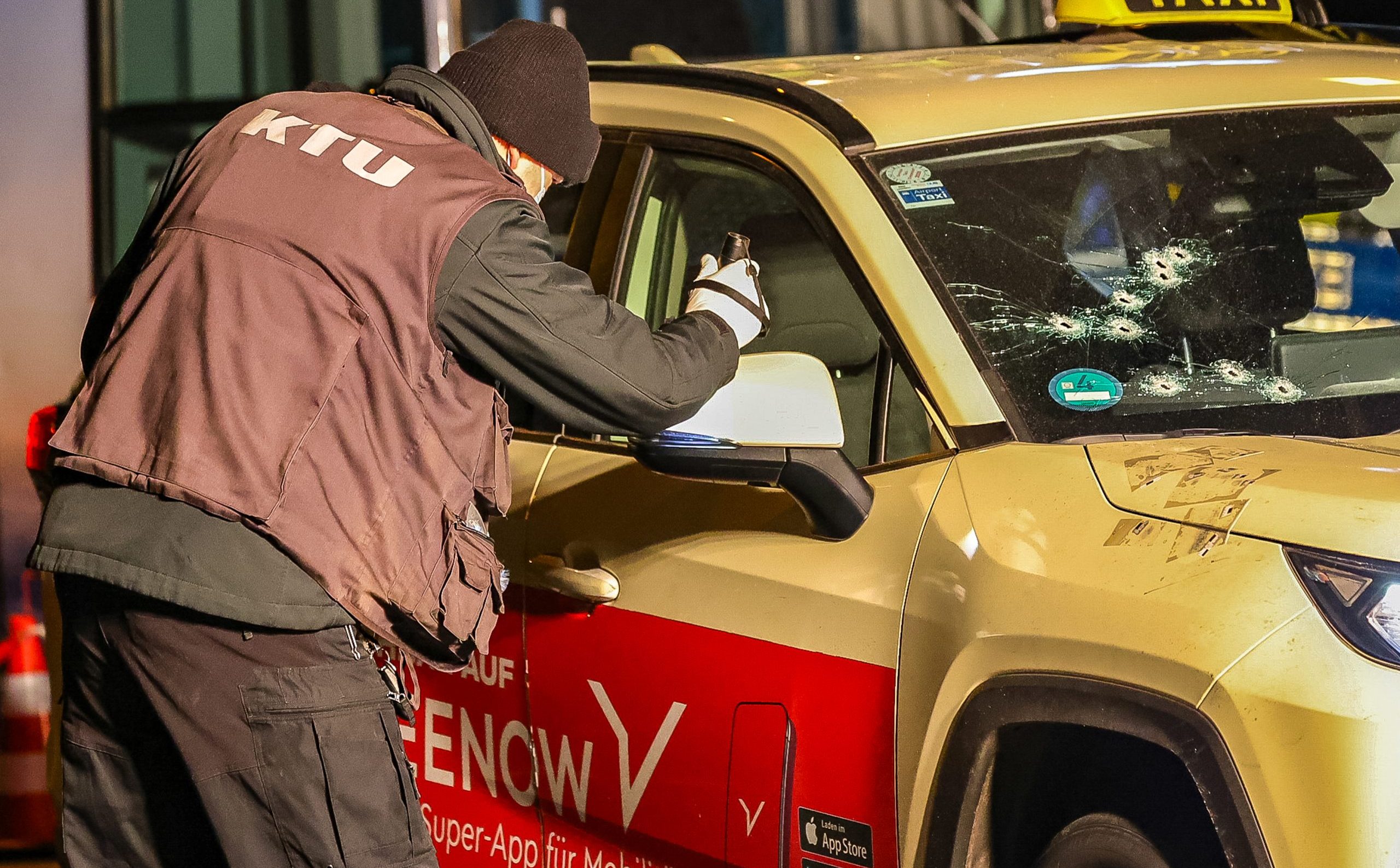 Nach Angaben der Polizei waren gegen 14.40 Uhr mehrere Notrufe in der Leitstelle eingegangen, nachdem Zeugen Schüsse auf ein Fahrzeug gemeldet hatten. Der Angriff richtete sich nach bisherigem Kenntnisstand auf die Beifahrerseite eines Taxis, in dem sich das spätere Opfer befand.